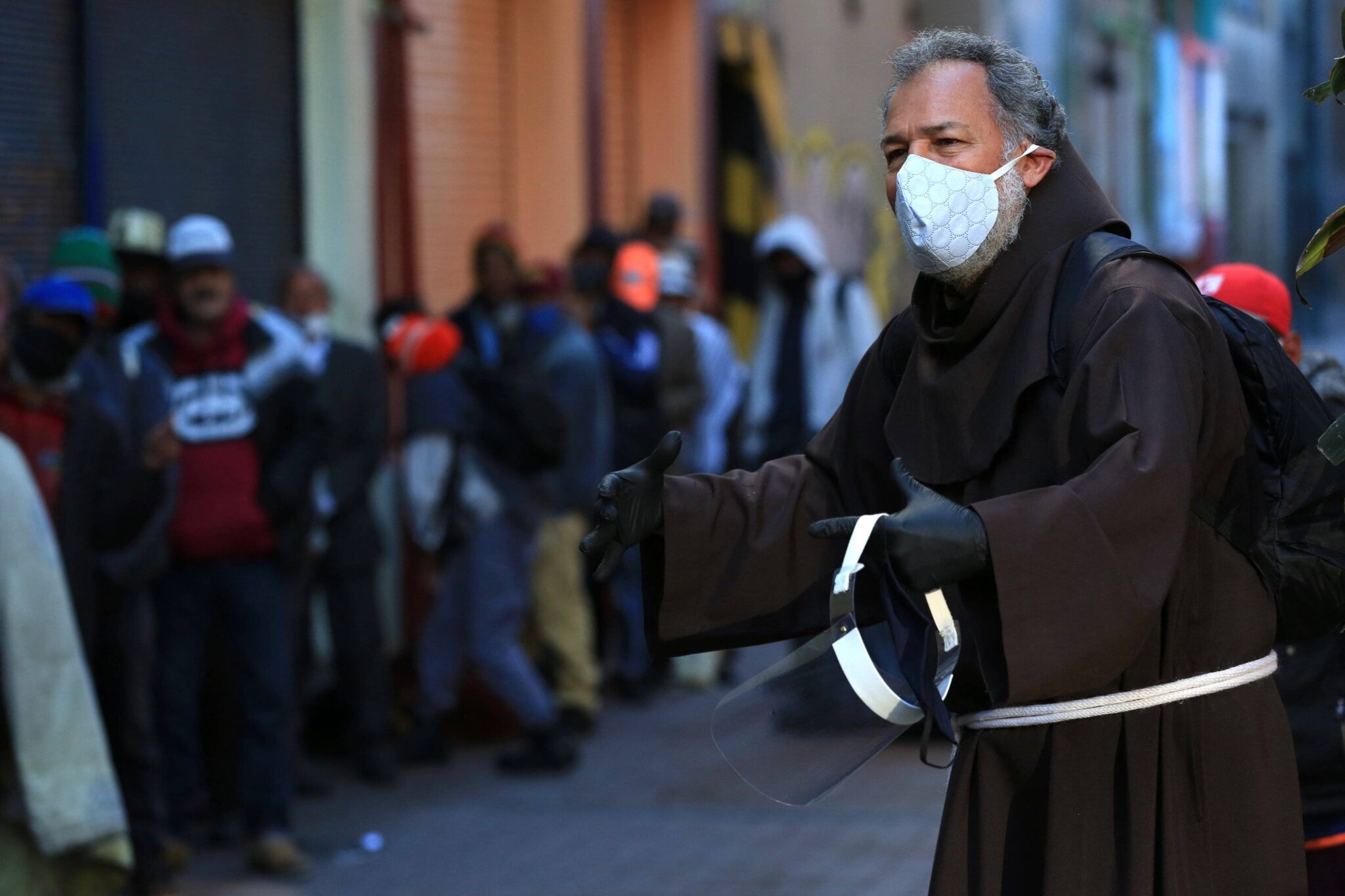 En cuarentena el hambre no aguanta, bajo este lema el sacerdote franciscano Gabriel Gutiérrez, fundador de Callejeros de la Misericordia y conocido como fray Ñero, en alianza con la Policía Nacional, fundación Cachivacheros de Colombia y la Alcaldía, realizó una jornada de atención humanitaria para familias que dependen de las ventas ambulantes, mejor conocidos como cachivacheros, en el centro de Bogotá.