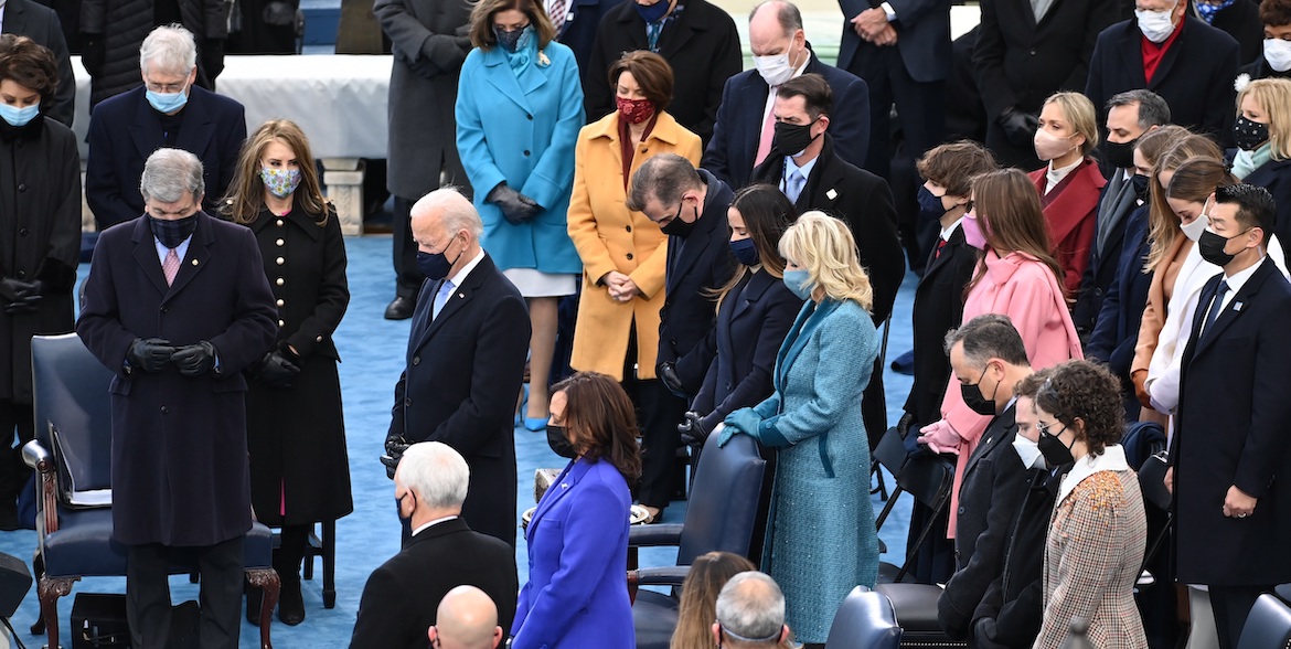 Washington (United States), 20/01/2021.- US President-elect Joe Biden (L) prays at the beginning of the swearing in ceremony during the inauguration of Joe Biden as US President in Washington, DC, USA, 20 January 2021. Biden won the 03 November 2020 election to become the 46th President of the United States of America. (Estados Unidos) EFE/EPA/SAUL LOEB / POOL