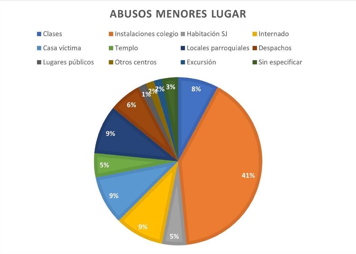 Asimismo, en el 80% de los casos de abusos a menores consta una única denuncia. En 17 de los casos registrados, el conocimiento o denuncia de los abusos llegó a la Compañía de Jesús cuando el jesuita ya había fallecido o había abandonado la orden.