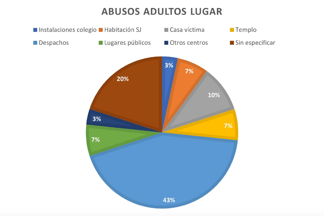 En relación a las personas abusadas en etapa adulta, 31 jesuitas han sido acusados en total. En 4 casos (12%) habría más de una víctima y en 27 (88%) consta una acusación.