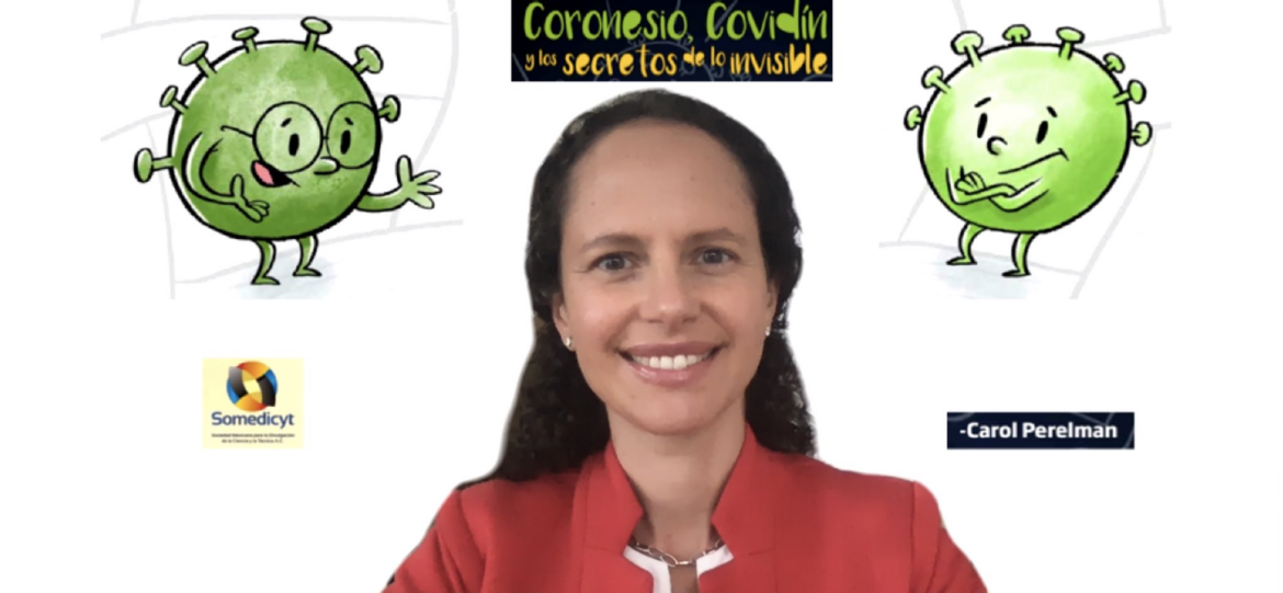 La química farmacéutica y bióloga por la Universidad Nacional Autónoma de México (UNAM), Carol Perelman, es autora del cuento “Coronesio, Covidín y los secretos de lo invisible”, una historia ficticia basada en evidencia científica sobre el SARS-CoV-2.