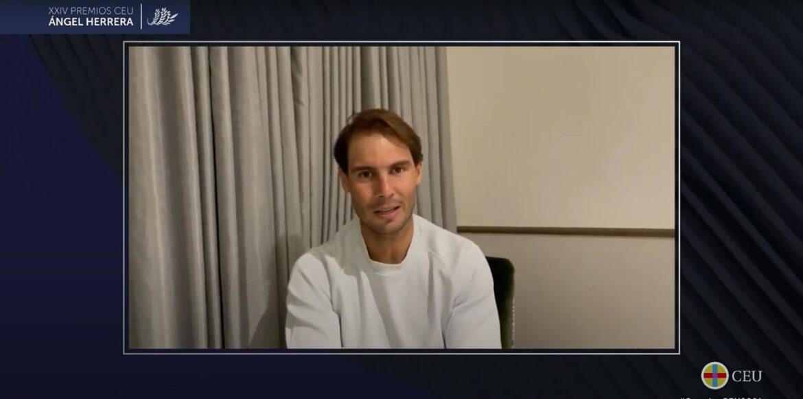 Para Rafa Nadal, el deportista español más laureado de la historia, “ser buen deportista es un objetivo que he tenido bien claro desde pequeñito, pero mucho más ser amigo de mis amigos y aportar a la sociedad lo mejor de mí”. Así lo ha compartido esta mañana, al recibir el premio CEU Ángel Herrera en su categoría de ‘Ética y valores’. El tenista ha agradecido el galardón en una ceremonia virtual presentada por el periodista Ángel Expósito. Promovidos por la Fundación Universitaria San Pablo CEU, estos premios que han cumplido su XXIV edición, reconocen anualmente la labor de personas, instituciones y empresas que han destacado por su contribución a la promoción del bien común.