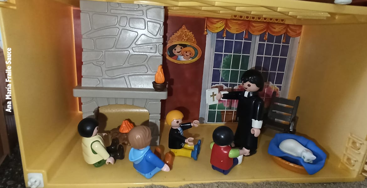 También los salesianos que están reflejados, han sido tomados del primer grupo de religiosos profesos de la congregación impulsada por san Juan Bosco gracias al respaldo del papa Pío IX. Por eso, en este diorama, el click que representa a Don Bosco y que ha sido customizado para la ocasión, “está dando las conocidas como Buenas Noches, un momento que se mantiene hoy en día en todas las casas salesianas del mundo, en el que salesianos y educares comparten una mirada esperanzadora de lo que los chicos están viviendo”.