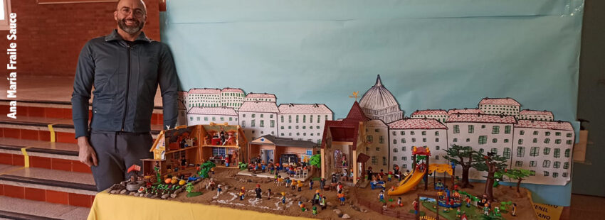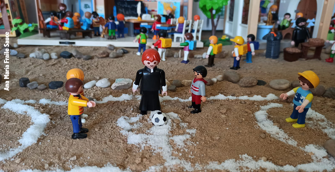 En uno de esos centros educativos, en el colegio María Auxiliadora de las salesianas de Zaragoza, el profesor de Educación Infantil Rubén Sanz Victoria ha desarrollado una gran maqueta con clicks de Playmobil de escenas del Oratorio de Valdocco, la primera casa del santo en la ciudad italiana de Turín, para que los más pequeños entren en contacto con la historia fundacional del que sería declarado por Juan Pablo II como “padre y maestro de la juventud”.