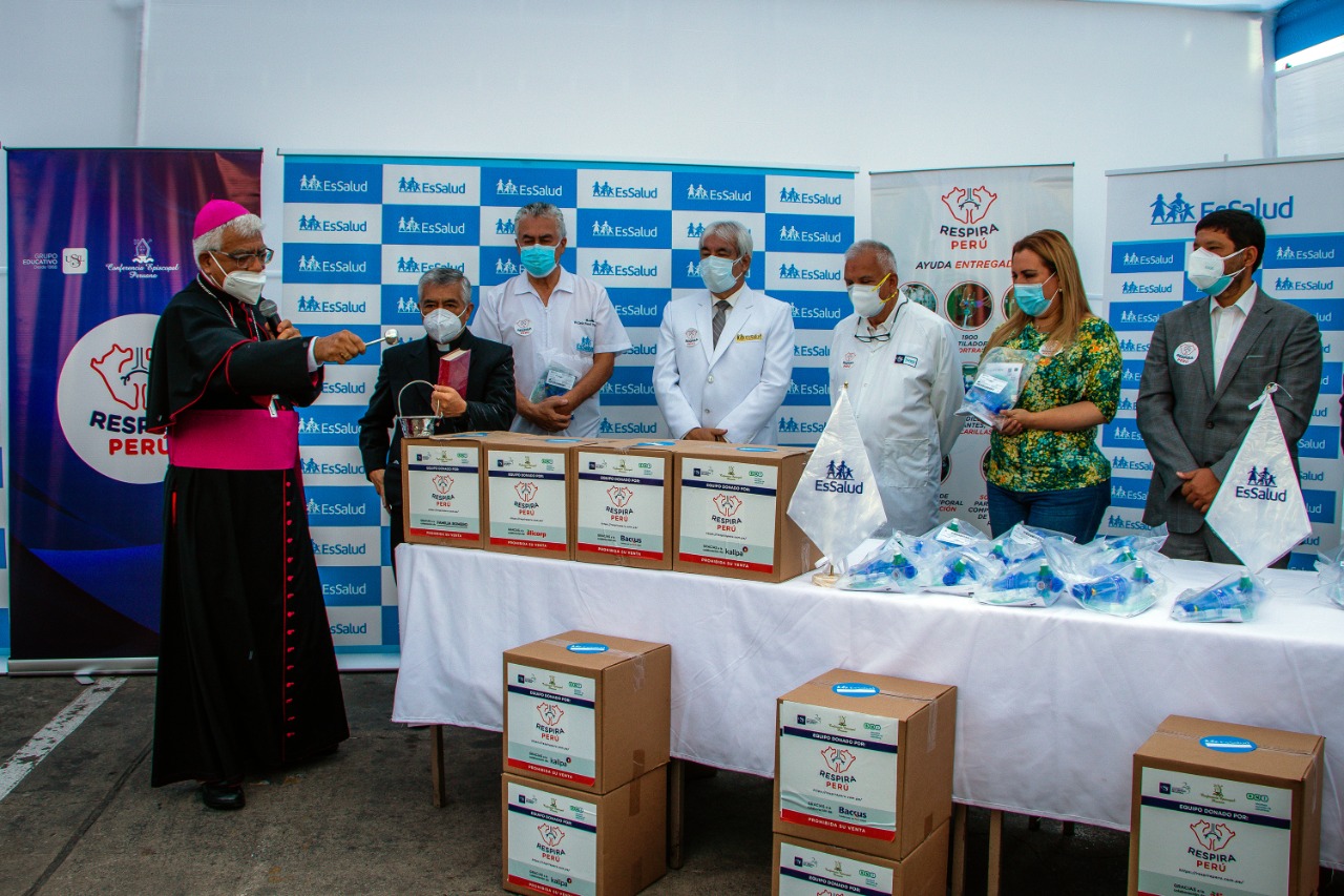 La Conferencia Episcopal Peruana, la Sociedad Nacional de Industrias y la Corporación Educativa San Ignacio de Loyola, entregaron 880 respiradores mecánicos personales (Vortran) al sistema de Seguros Socials (EsSalud) y a la red hospitalaria del Ministerio de Salud gracias al apoyo de empresas privadas en el marco de la campaña ‘Respira Perú’.