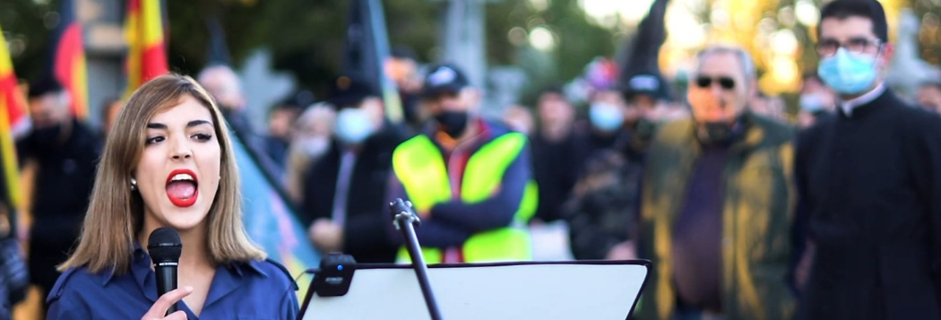 Más allá de las numerosas banderas con esvásticas y escudos falangistas, el notorio acto de exaltación fascista quedó retratado en la intervención de Ignacio Menéndez, abogado Carlos García Juliá, uno de los asesinos condenados por la matanza a sangre fría, en 1977 en Madrid, de los abogados de Atocha. Desafiando toda medida sanitaria por la pandemia, exigió a los presentes que”incumpláis el toque de queda, os reunáis con vuestros familiares y amigos, seáis más de seis, como somos hoy aquí. Y que os abracéis, y que cantéis y que viváis alegres. Porque el fascismo es alegría”.