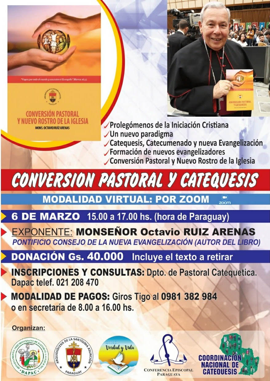 Por este motivo, anunció un nuevo curso, con modalidad virtual a través de zoom, que se realizará el próximo 6 de marzo. Se trata de una capacitación a cargo de Octavio Ruiz Arenas, Arzobispo Emérito de Villavicencio y Secretario Emérito del Pontificio Consejo para la Promoción de la Nueva Evangelización.