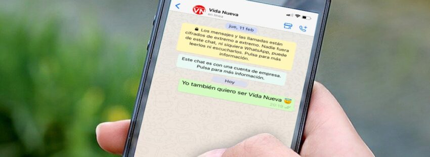 - Abre una conversación de WhatsApp con Vida Nueva.