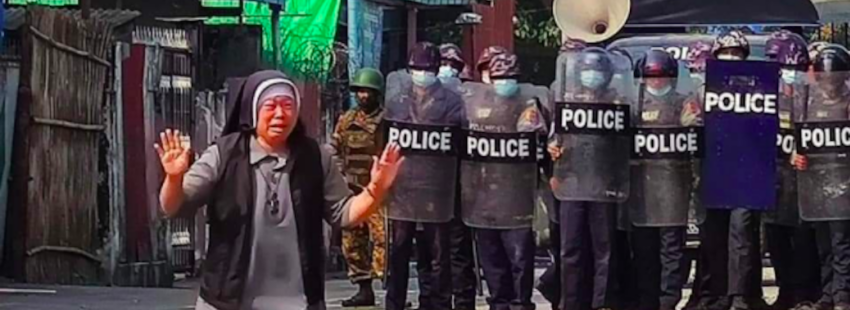 “Con lágrimas en los ojos, la Hna. Ann Nu Thawng ruega y detiene a la policía para que deje de arrestar a los manifestantes“, relata el cardenal, añadiendo, además, que “aproximadamente 100 de los manifestantes pudieron escapar de la policía gracias a la monja”.