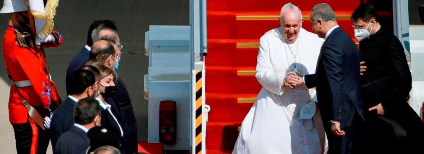 Francisco comienza de esta manera su periplo por seis ciudades del país –Bagdad, Nayaf, Nassiriya, Erbil, Mosul y Qaraqosh– en un viaje, primero tras el parón de la pandemia del coronavirus, que concluirá el próximo lunes, cuando llegue a Roma en torno a las 13:00 horas.