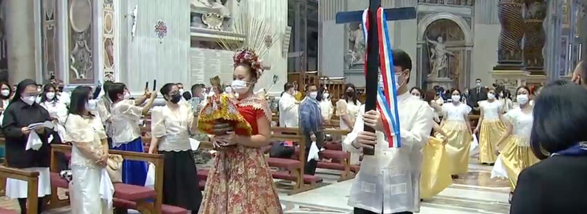 Con una nutrida representación de la comunidad filipina –dentro de las preceptivas restricciones–, el papa Francisco ha presido la eucaristía en la basílica vaticana para conmemorar el 5º centenario de la evangelización del país asiático. Filipinas es el tercer país del mundo por número de católicos. Algunos de los cantos elegidos y los trajes típicos han sido la nota de distinción en San Pedro, en cuya celebración se han empleado el rosa como color litúrgico propio de este IV Domingo de Cuaresma.