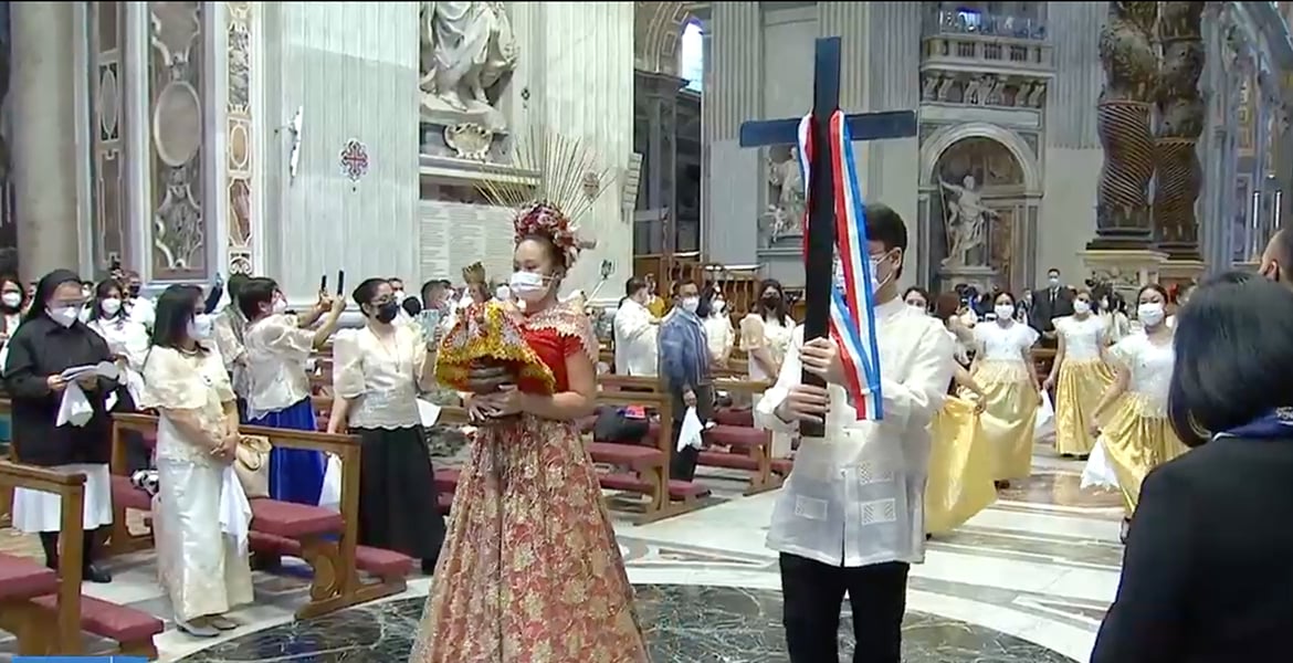 Con una nutrida representación de la comunidad filipina –dentro de las preceptivas restricciones–, el papa Francisco ha presido la eucaristía en la basílica vaticana para conmemorar el 5º centenario de la evangelización del país asiático. Filipinas es el tercer país del mundo por número de católicos. Algunos de los cantos elegidos y los trajes típicos han sido la nota de distinción en San Pedro, en cuya celebración se han empleado el rosa como color litúrgico propio de este IV Domingo de Cuaresma.
