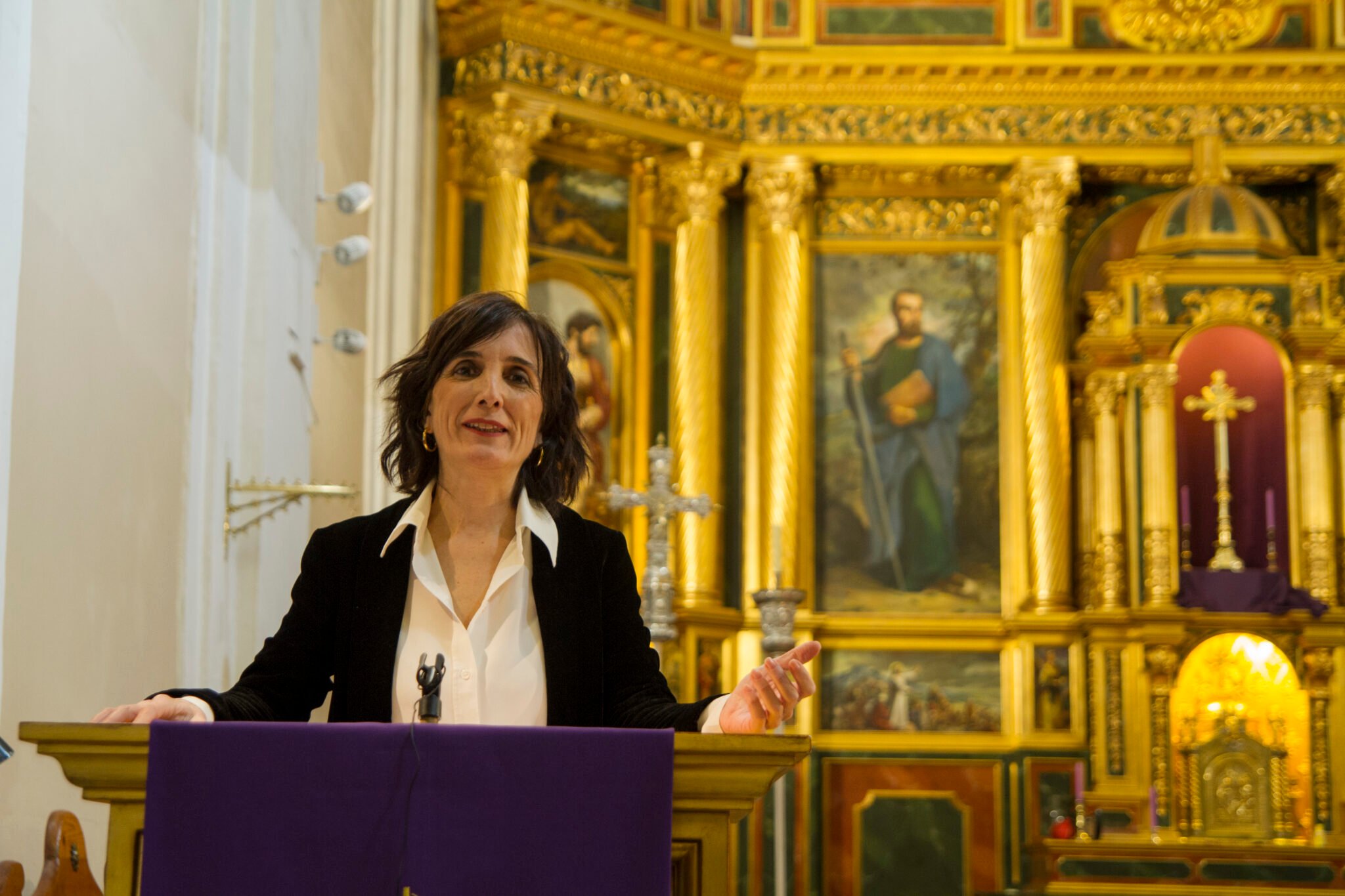 Así, la periodista perteneciente a la Oficina de Prensa de la Conferencia Episcopal entonó su pregón desde el ambón de la parroquia Santa María la Antigua, en Vicálvaro, donde es feligresa. Desde allí, tuvo un primer recuerdo para todos los que “habéis perdido a un familiar, que estáis pasando por situaciones duras por falta de trabajo, de soledad o de enfermedad”. Desde Barbastro, le escuchaban, entre otros, el obispo Ángel Pérez Pueyo, el presidente de la Junta coordinadora de Cofradías, Silvia Peropadre, junto a otras autoridades y entidades locales.