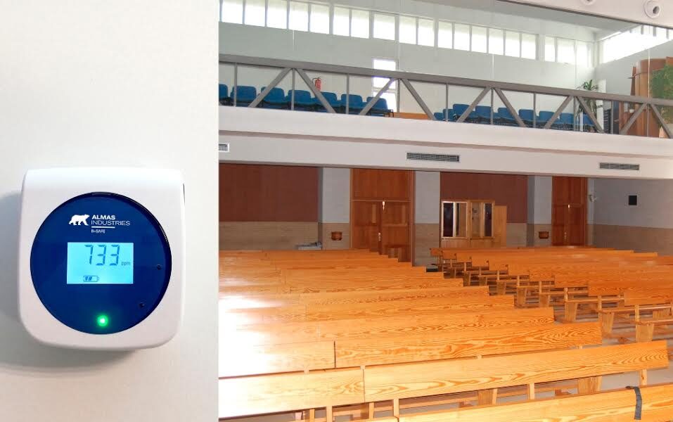 Este sistema de sensores cuenta con una sonda de CO2 con Tecnología NDIR infrarroja no dispersiva de alta precisión con una resolución de 1 ppm (partes por millón), que son los equipos que recomienda el Ministerio de Ciencia e innovación junto al CSIC en la Guía para la ventilación de las aulas. Desarrollados por la empresa B+SAFE (Grupo ALMAS INDUSTRIES), además proporcionan información sobre temperatura, humedad y presión. Además, cuenta con una opción que permite controlar diferentes dependencias a la vez, por ejemplo, otras capillas, salas de catequesis, despachos…
