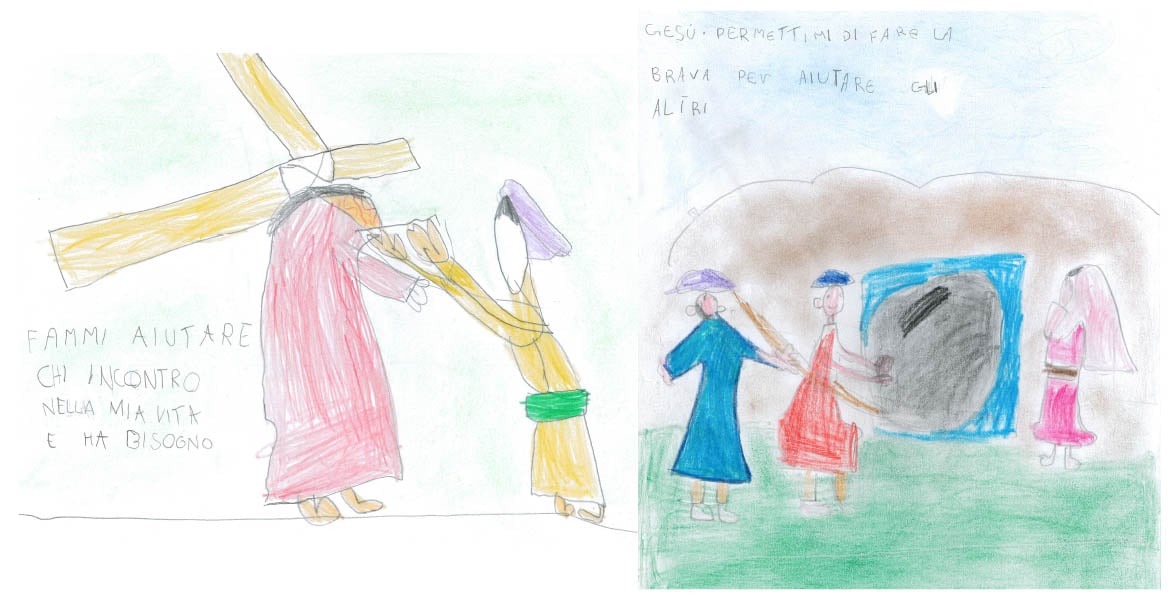 También los niños han ofrecido su sensación de fracaso y desconsuelo o el apoyo incondicional de una madre: “en los momentos más difíciles no necesito decir palabras, basta una mirada, ella se da cuenta enseguida y me ayuda a superar cada sufrimiento”. Otro testimonio mostró la alegría de integrar a un compañero, a pesar de los prejuicios iniciales por su origen diferente. La escena de la Verónica puede suceder para los niños en un vestuario de fútbol tras una derrota porque “en el rostro afligido de un amigo, o incluso de un desconocido, está el rostro de Jesús que pasa por el mismo camino que yo… ¿Tendré la valentía de acercarme?”