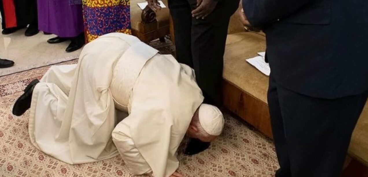Francisco se agacha a besar los pies a los líderes de Sudán del Sur