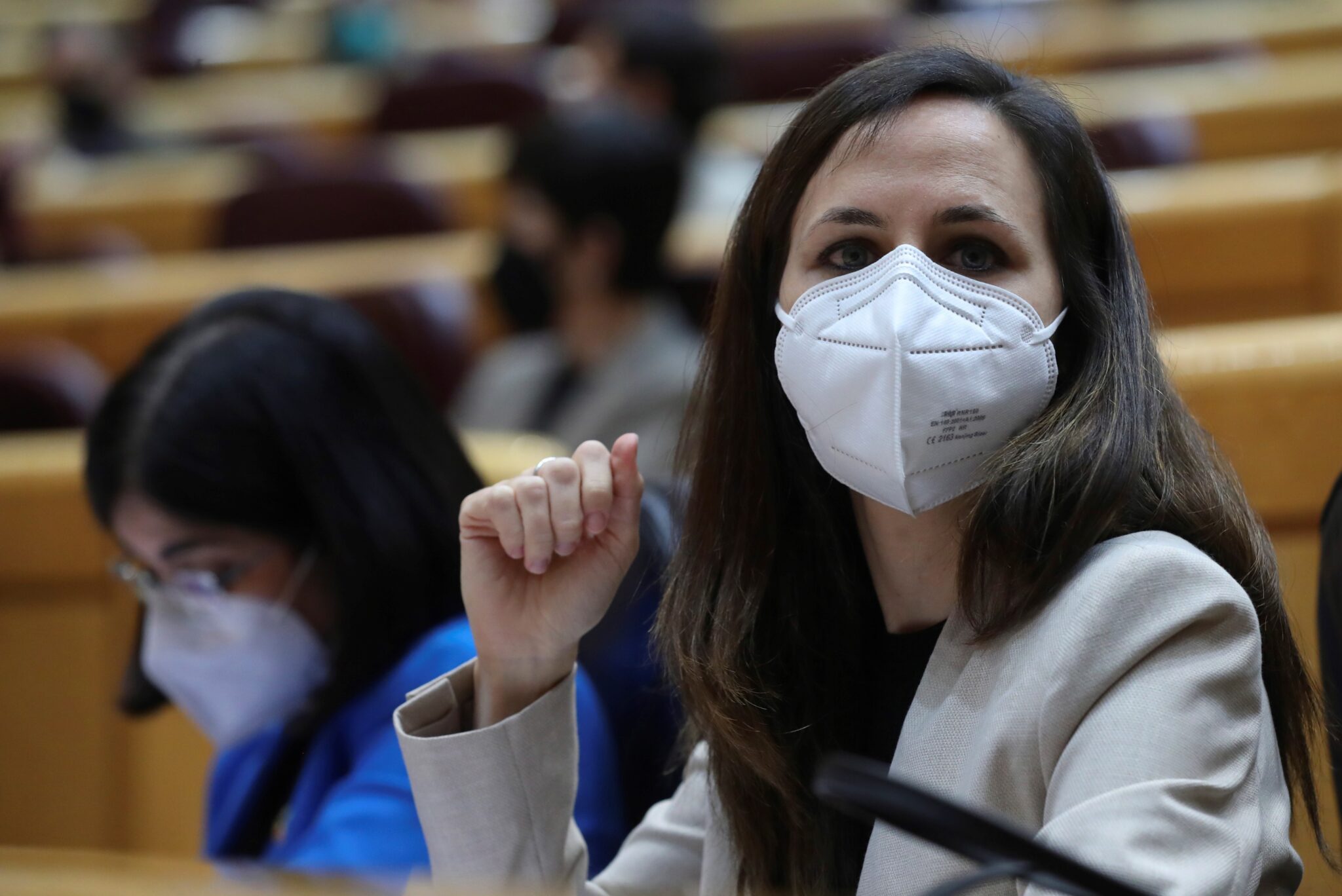GRAF3479. MADRID, 13/04/2021.- La ministra de Derechos Sociales y Agenda 2030, Ione Belarra, durante la sesión de control al Gobierno en el pleno del Senado. EFE/Kiko Huesca