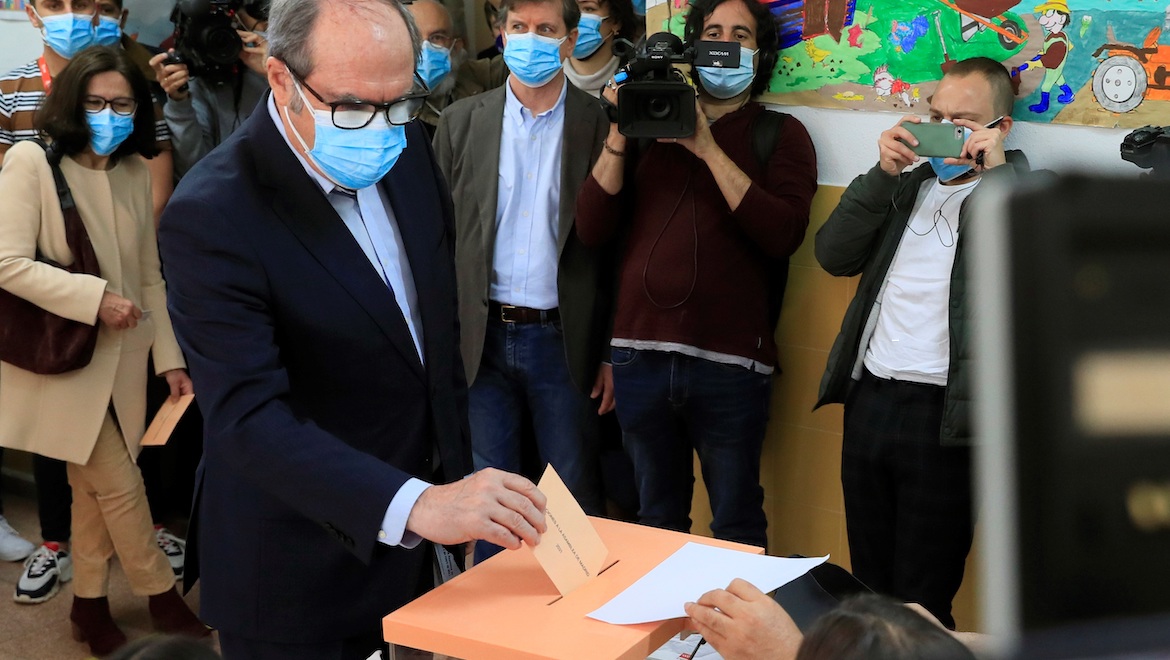 Por su parte, el candidato del PSOE, Ángel Gabilondo, ha ejercido su derecho al voto en el colegio público Joaquín Turina, situado en la calle Arturo Soria de la capital.