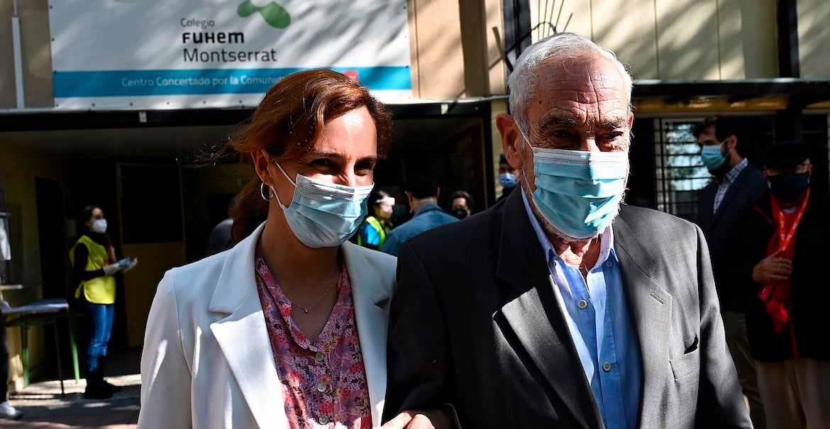 Por su parte, la candidata de Más Madrid, Mónica García, ha acudido al colegio concertado FUHEM Montserrat acompañando a su padre, Sergio García Reyes, ya que ella había votado por correo.