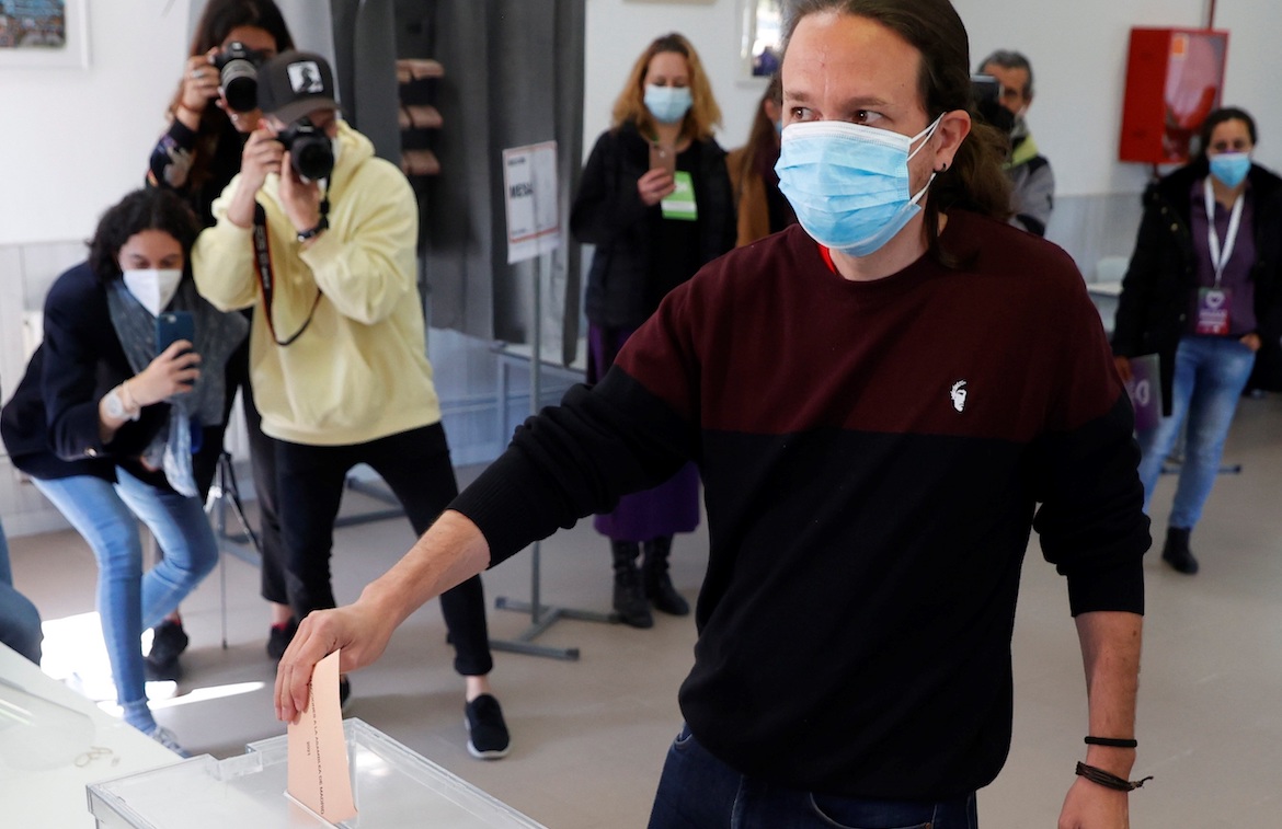 También el candidato de Unidas Podemos a la Presidencia de la Comunidad de Madrid, Pablo Iglesias, ha ejercido su derecho al voto en un colegio público. En concreto, en el centro La Navata ,de la localidad madrileña de Galapagar.