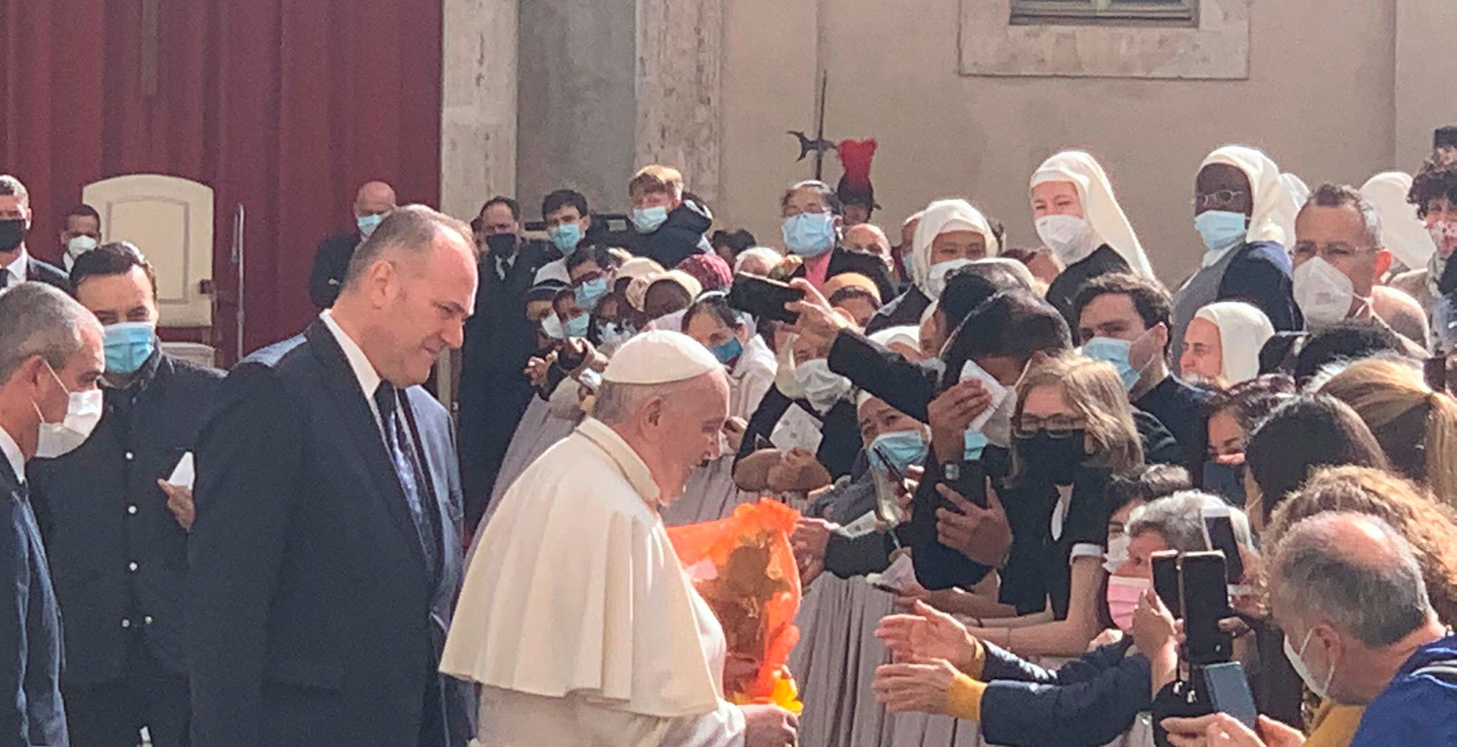 El papa Francisco estaba este miércoles encantado de poder volver a celebrar la audiencia general con público en el patio de San Dámaso del Palacio Apostólico del Vaticano. La llegada del buen tiempo y la mejora de la situación de la pandemia en Italia gracias al avance de la campaña de vacunación animaron a Leonardo Sapienza, regente de la Prefectura de la Casa Pontificia, a abandonar las catequesis a puerta cerrada, algo que fue muy celebrado por el Pontífice.