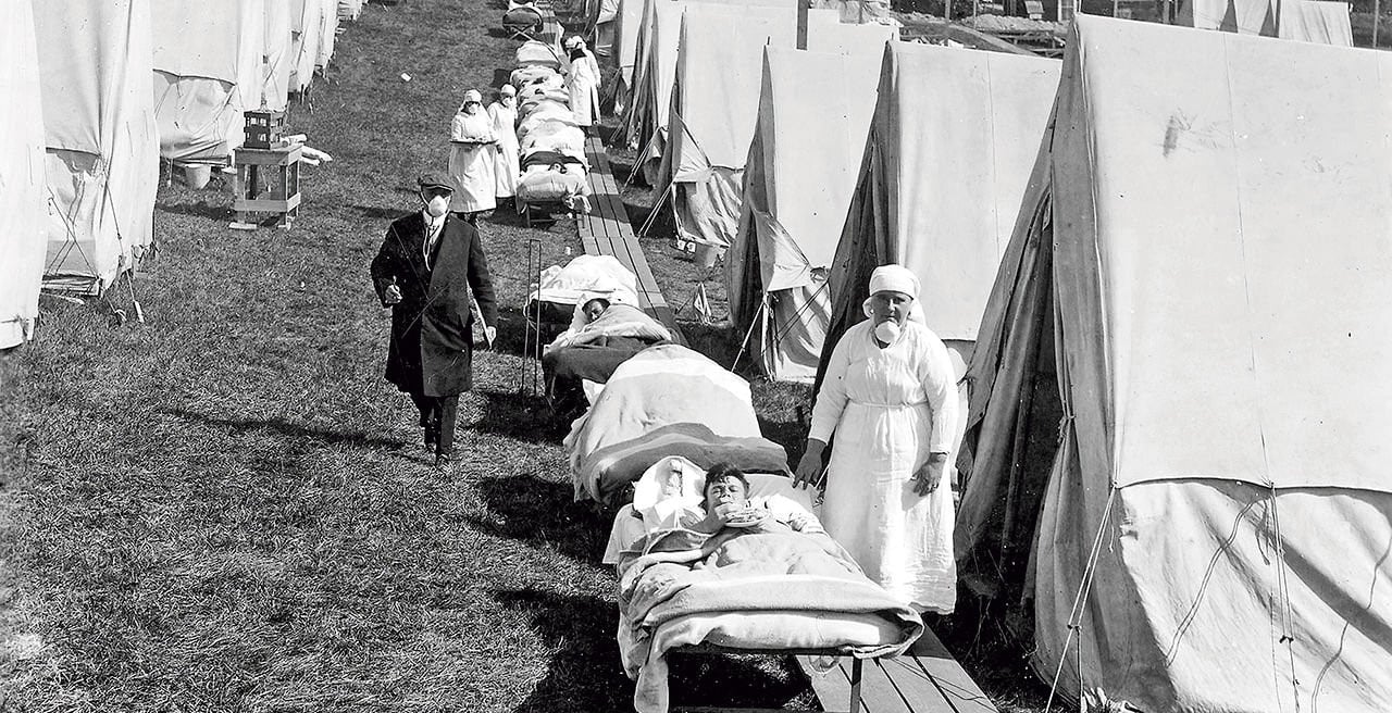 Hace un siglo, conflicto bélico y pandemia se entremezclaron sin tregua. La guerra misma ayudó a que el virus se propagara por los millones de soldados (y refugiados) viajando de un continente a otro, de un frente a otro, en un continuo ir de personas y mercancías. Los historiadores aseguran que los médicos militares eran muy conscientes del peligro de propagación de enfermedades infecciosas. Sobre todo, temían el tifus, el cólera y la viruela.