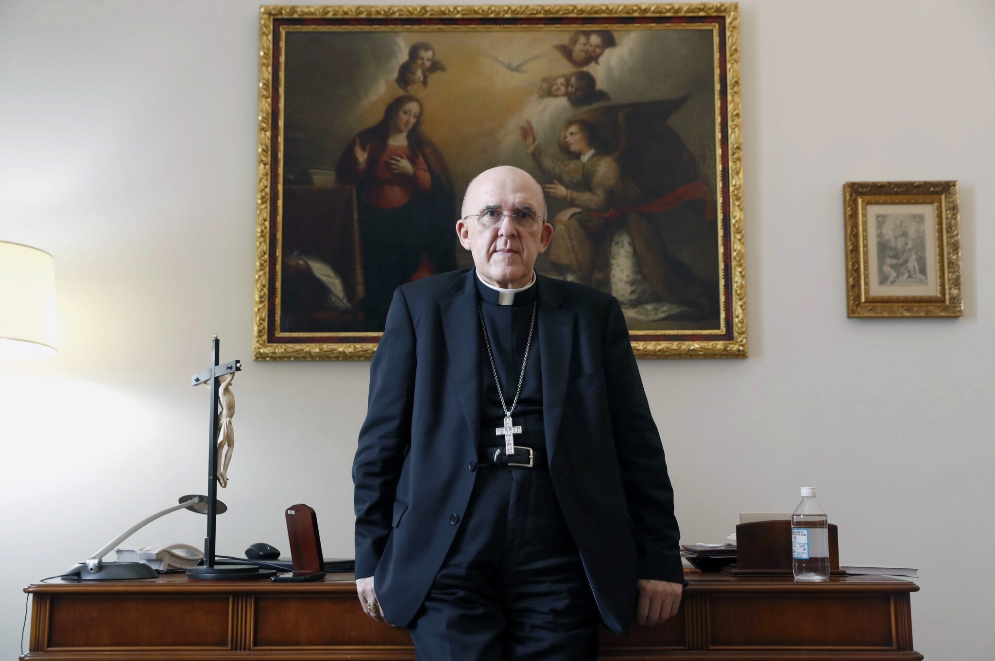 GRAF8474. MADRID, 28/06/2020.- El cardenal Carlos Osoro, vicepresidente de la Conferencia Episcopal y arzobispo de Madrid, durante una entrevista con EFE en la que asegura que la Iglesia está de moda", y piensa que la pandemia ha alumbrado "un nuevo tiempo de gran creatividad", que obliga a replantearse muchas cuestiones. EFE/J.J. Guillén