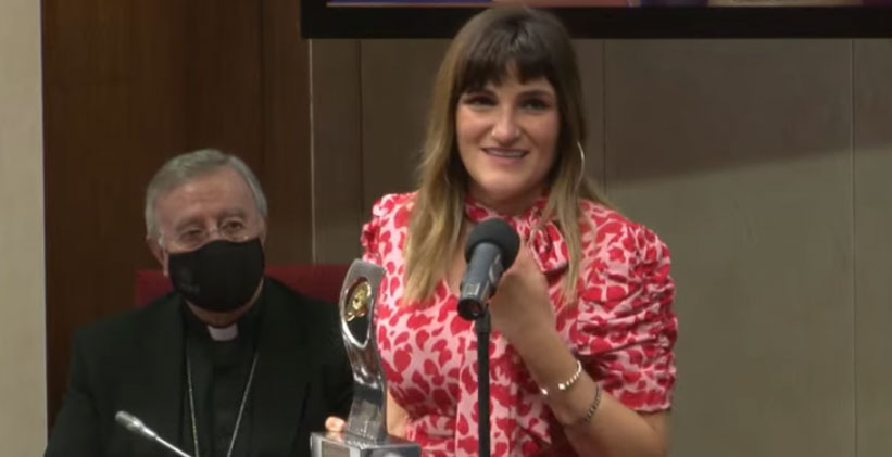 La cantante se mostró agradecida por aquel “sermón” que le dio el empujón definitivo para ser lo que es hoy. Aquel sacerdote es su amigo y, destacó ante el nuncio en España y otros prelados de la comisión de las Comunicaciones Sociales, que para su familia es un orgullo que haya sido galardonada con el premio.