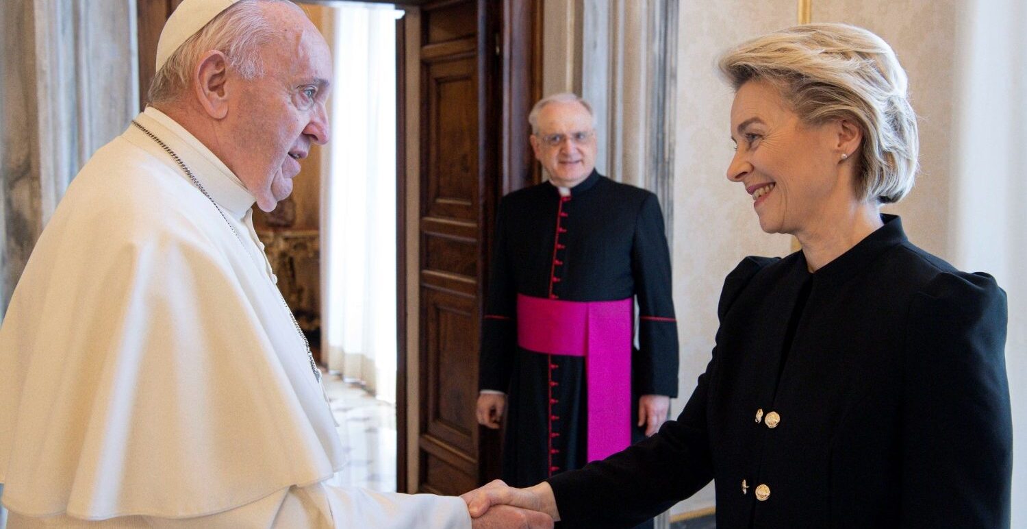 La presidenta de la Comisión Europea, Ursula von der Leyen, ha sido recibida en audiencia esta mañana por el papa Francisco en el Vaticano. El encuentro se ha producido en el Palacios Apostólico. El la primera vez que la mandataria alemana acude al Vaticano y se ha reunido, además, con el secretario de Estado de la Santa Sede, el cardenal Pietro Parolin, y el secretario de Relaciones con los Estados, el arzobispo Paul Richard Gallagher, como suele ser habitual con los mandatarios políticos de primer nivel. Es la primera vez que la presidenta es recibida por Francisco.