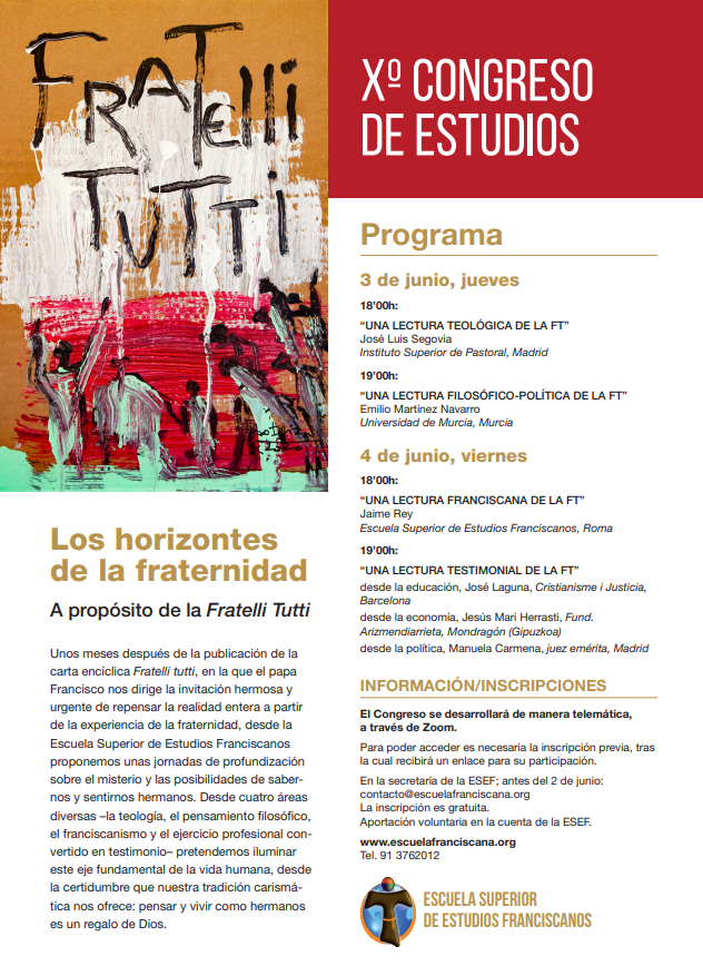 “Unos meses después de la publicación de la carta encíclica en la que el papa Francisco nos dirige la invitación hermosa y urgente de repensar la realidad entera a partir de la experiencia de la fraternidad, proponemos unas jornadas de profundización sobre el misterio y las posibilidades de sabernos y sentirnos hermanos”, explican desde la Escuela Franciscana.