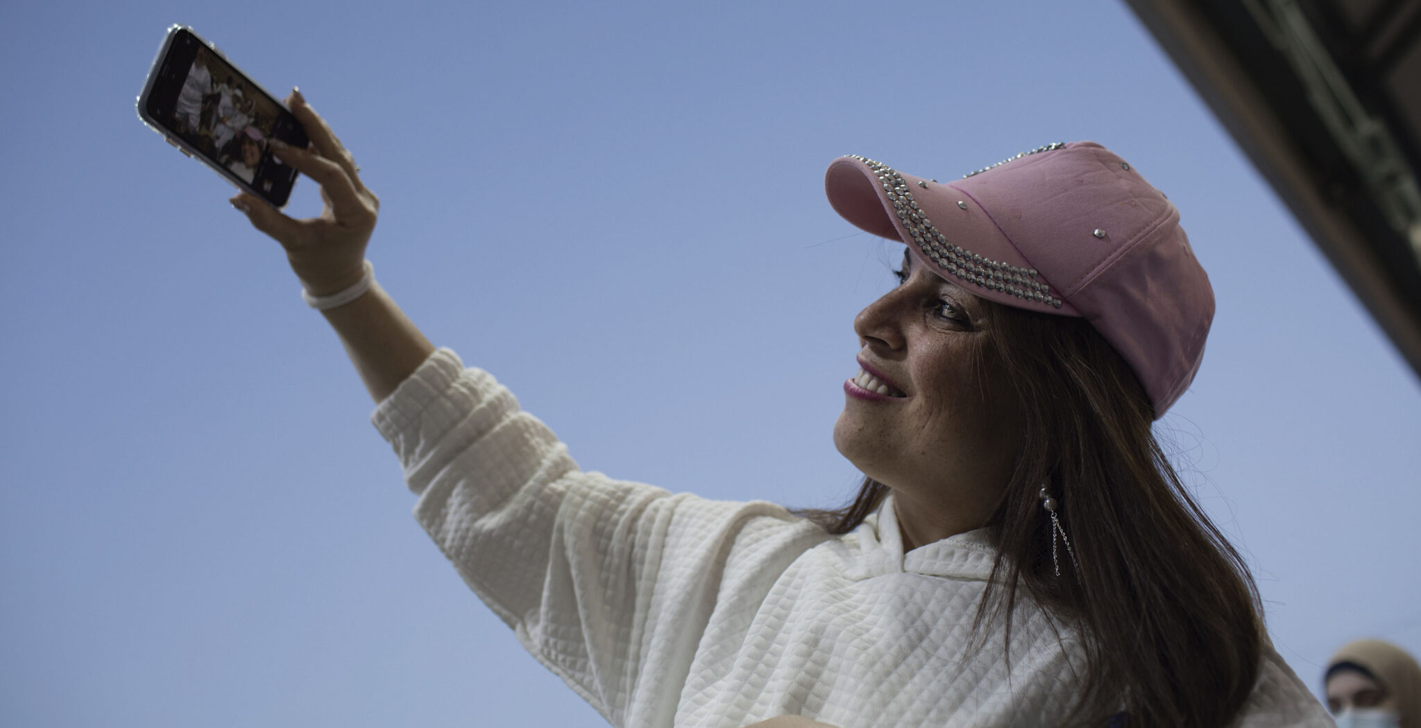 Jocabed nos recibe en el salón. Todavía tiene los rulos puestos y no tiene prisa, porque por fin puede descansar y dedicar la mañana a ponerse guapa. En la habitación contigua hay un continuo ir y venir de gente. Todos los hombres están en fila esperando su turno para felicitar al Sumo Sacerdote por la Pascua. Abed-El, que viste un vestido largo gris y un tocado rojo, es el guía espiritual de los samaritanos desde 2013. Es el suegro de Jocabed.