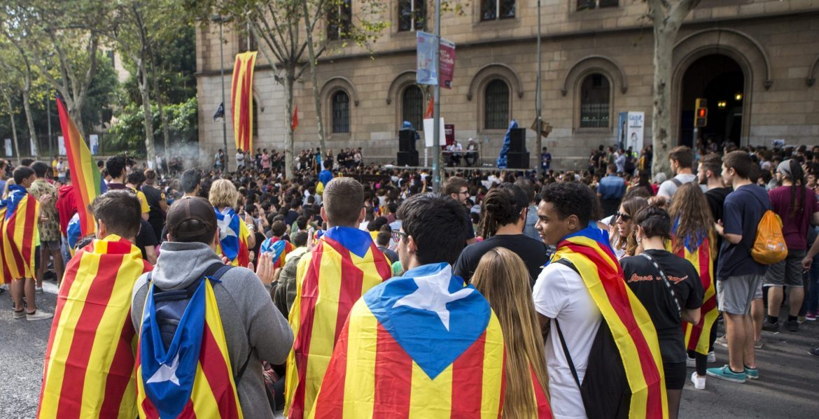 Manifestantes en la Gran Vía de Barcelona a favor del referéndum por la independencia del 1 de octubre/EFE