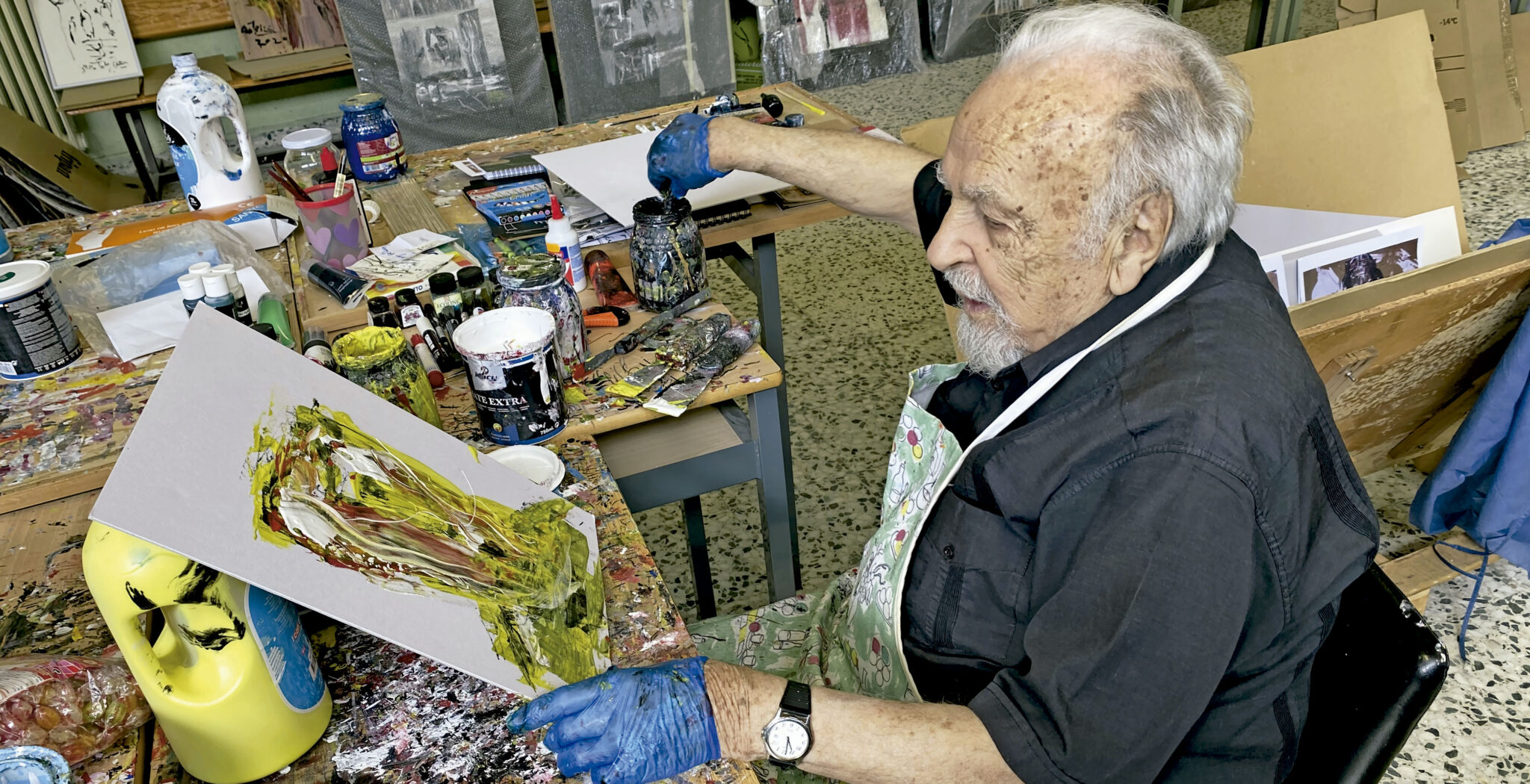 El escultor pinta y pinta cartones con acrílico: los rostros de Cristo, el Cántico de las criaturas de san Francisco de Asís, la muerte de san José o sobre Fratelli tutti, serie inspirada en la encíclica del papa Francisco que expone ahora en la parroquia madrileña de San Francisco Javier. “Sencillamente, en primer lugar, comencé a pintar sobre Fratelli tutti porque estaba recién publicada. Segundo, porque era actual. Y tercero, porque la Iglesia necesita imágenes. Las palabras necesitan una imagen digna, actual y verdadera”.