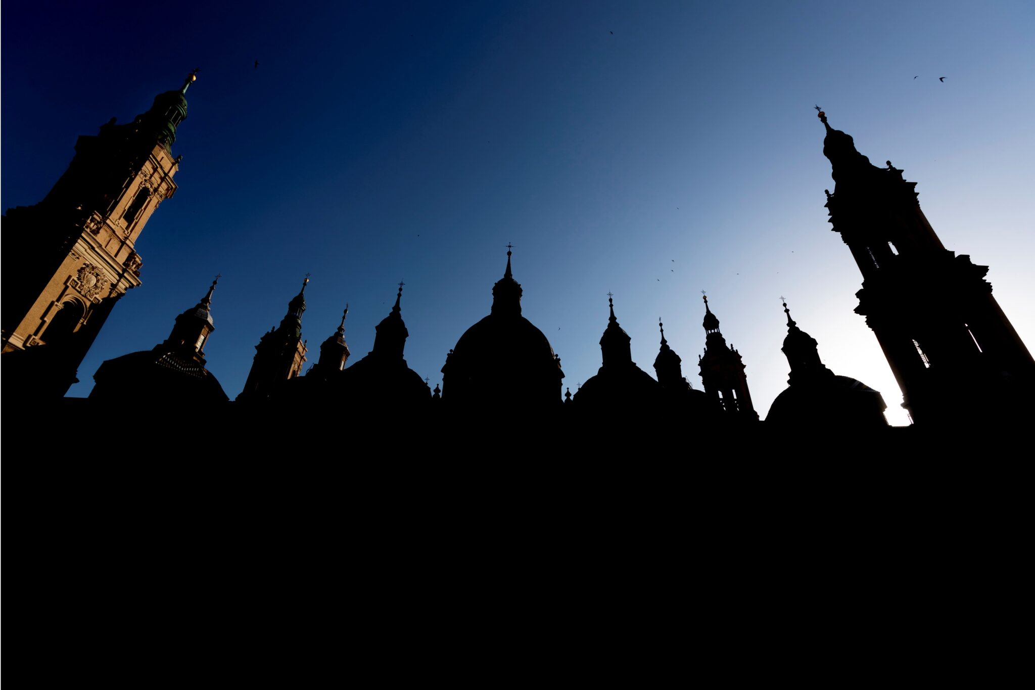 -FOTODELDÍA- ZARAGOZA 15/06/2021.- Vista de la catedral de El Pila a contraluz este martes en Zaragoza. La Agencia Estatal de Meteorología (Aemet) prevé para hoy, martes, chubascos y tormentas localmente fuertes y acompañadas de granizo en el interior del extremo norte de la península y en zonas próximas al sistema Ibérico, así como temperaturas significativamente altas en las depresiones de Aragón y de Cataluña. EFE/Javier Belver