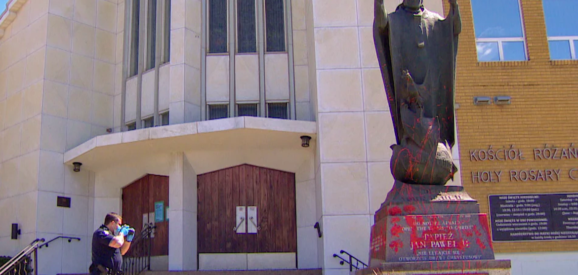 Una estatua de Juan Pablo II ha sido vandalizada este fin de semana en Canadá. Concretamente, se trata de una imagen que se encuentra a la entrada de la parroquia de Holy Rosary, en Edmonton, y cuya base amanecía con decenas de huellas de manos y pies, hechas con pintura roja. Según ha relatado a Ici Radio Andrzej Makarewicz, primer vicepresidente de la sección de Alberta del consejo Canadá-Polonia y miembro de la parroquia, la comunidad polaca de la misma considera este acto un ataque directo.