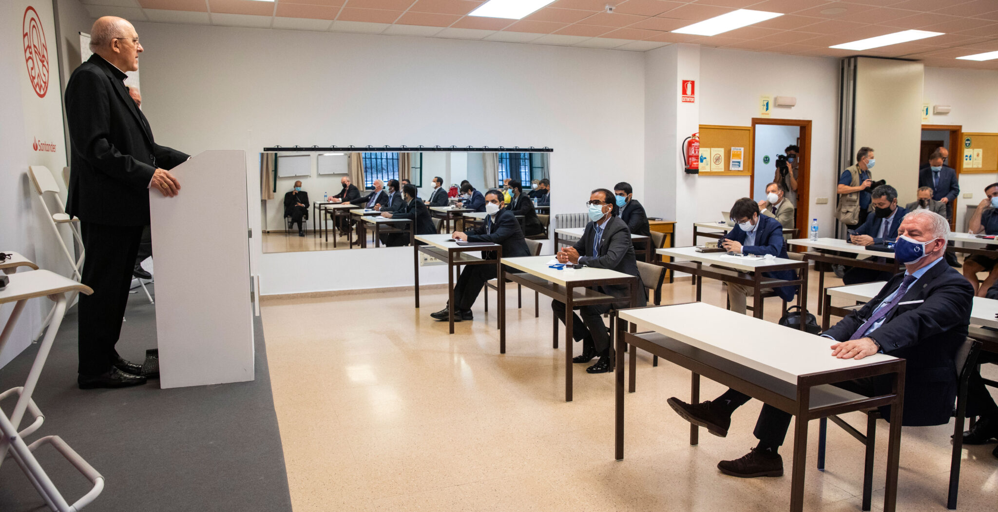 “Con el mundo islámico celebramos tener al mismo Dios como Señor de nuestra vida, y esto nos obliga a dialogar y a ser extremadamente respetuosos porque, como dice el Corán: ‘No hay coacción en asuntos de fe'”. Así se ha expresado el cardenal Carlos Osoro hoy durante su ponencia ‘Fraternidad humana y diálogo interreligioso’, dentro del curso de verano ‘Diálogo interreligioso frente al identitarismo excluyente’ organizado por la Universidad Complutense y la Fundación for Islamic Culture and Religious Tolerance (FICRT).