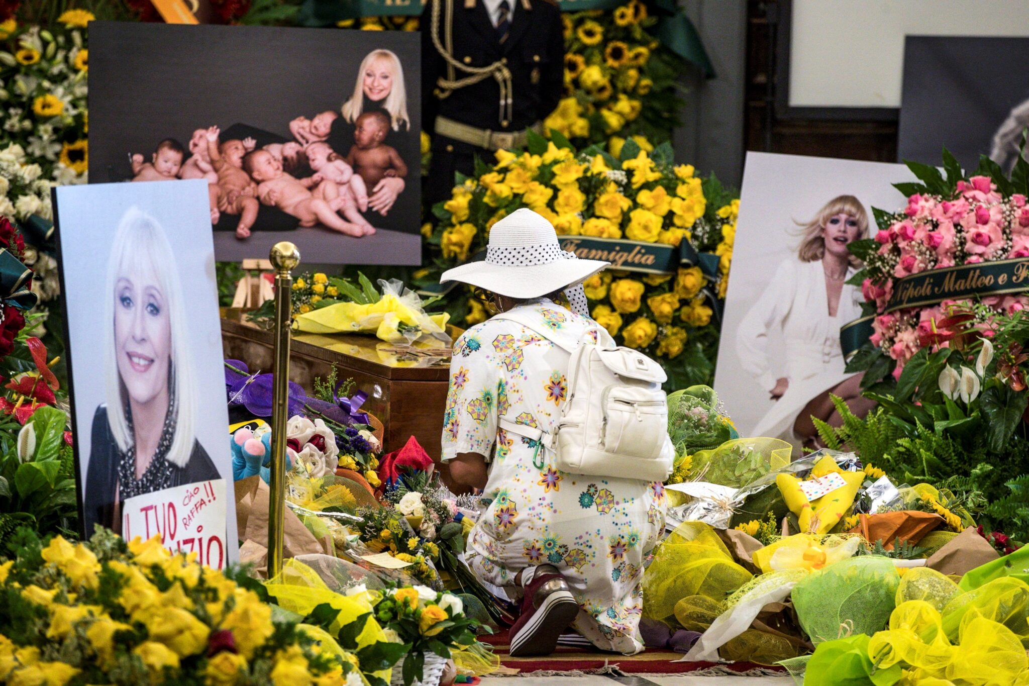 Retransmitido por la RAI prácticamente como si se tratara de un funeral de Estado, el cuerpo de la presentadora y cantante descansaba en un templo muy especial para ella. En primera fila en la misa estaban su familia, con su compañero, Sergio Japino, al frente, además de la alcaldesa de Roma, Virginia Raggi. Entre otros, también se encontraban el director ejecutivo de la RAI, Fabrizio Salini, y su compañera de batallas, Carmen Russo.