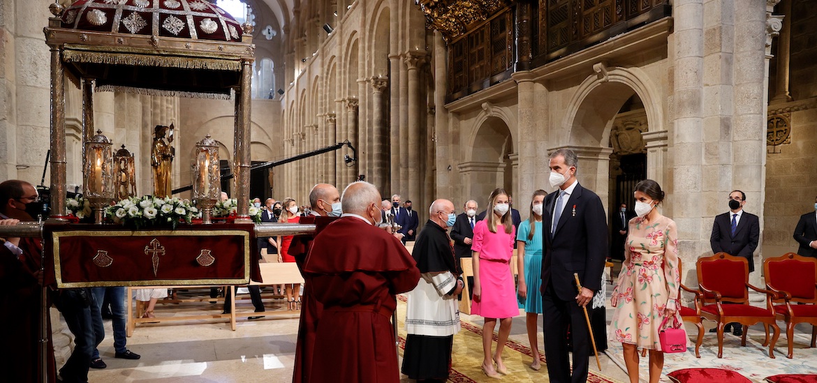 Las primeras luces después de la pandemia del Covid-19 empiezan a verse, especialmente en Santiago. Esa catedral que Felipe VI ha definido como una “luz de esperanza” a lo largo de la historia durante su tradicional ofrenda al apóstol. “Ayúdanos a cultivar los valores de la convivencia y solidaridad”, ha pedido el Rey, rodeado, por primera vez un 25 de julio, no solo por la Reina Letizia sino por la Princesa de Asturias y la Infanta Sofía, signo ambas de esa historia que “tiene las vistas en el porvenir”, como ha subrayado el Rey.