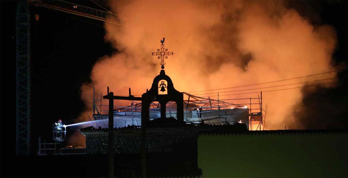 Varias dotaciones de bomberos de la Diputación de Palencia han trabajado en el lugar y se dan por perdidas las cubiertas del templo –en parte hundidas hace un año–, que alberga numerosas tallas y retablos de gran valor. No hay que lamentar la pérdida de la talla original de la Virgen, que se custodia en el Museo de Ampudia.