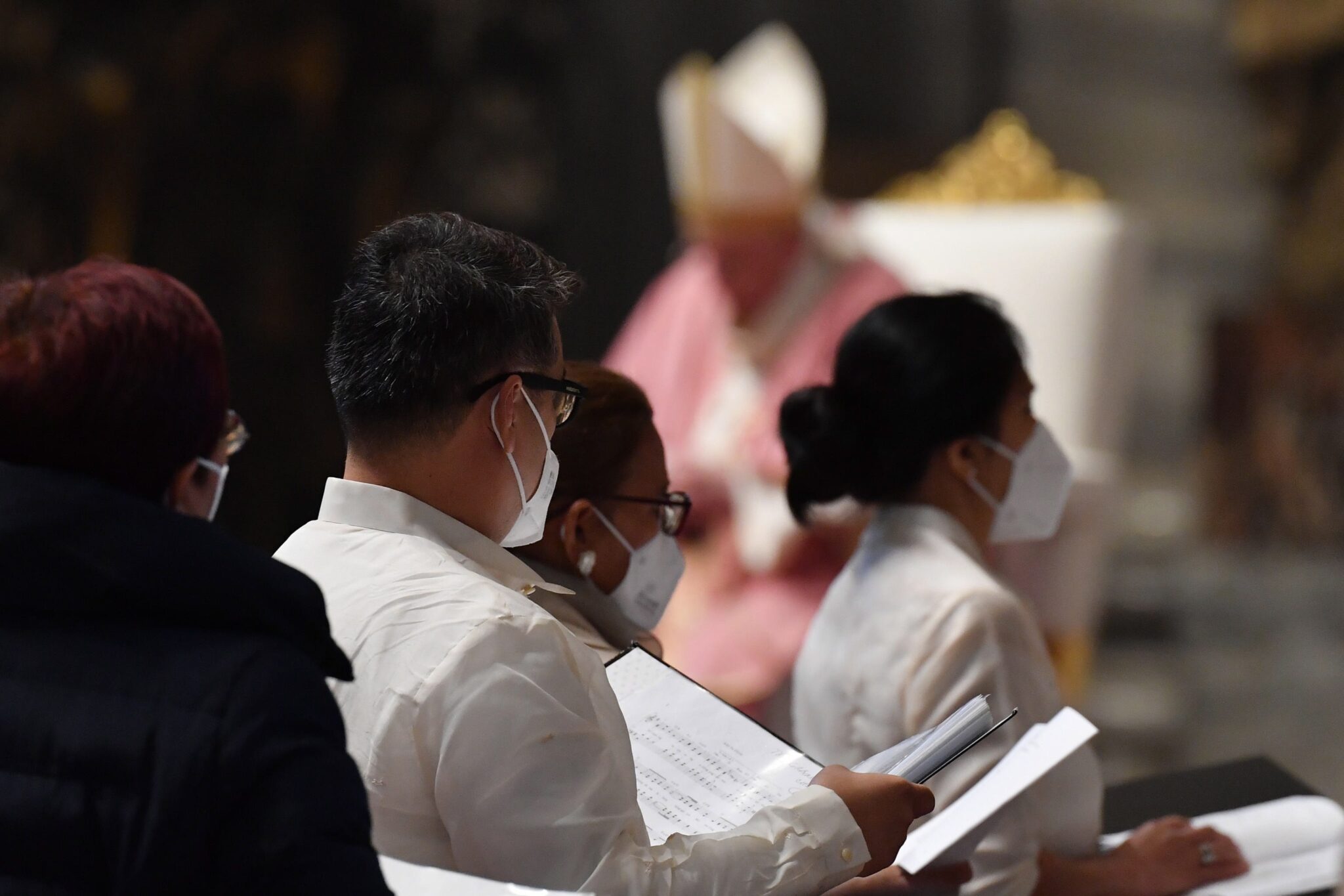 Vatican City (Vatican City State (holy See)), 14/03/2021.- Members of the Philippine community attend a Pope's mass to mark 500 years of Christianity in the Philippines at St. Peter's Basilica in The Vatican, 14 March 2021. (Papa, Filipinas) EFE/EPA/TIZIANA FABI / POOL POOL