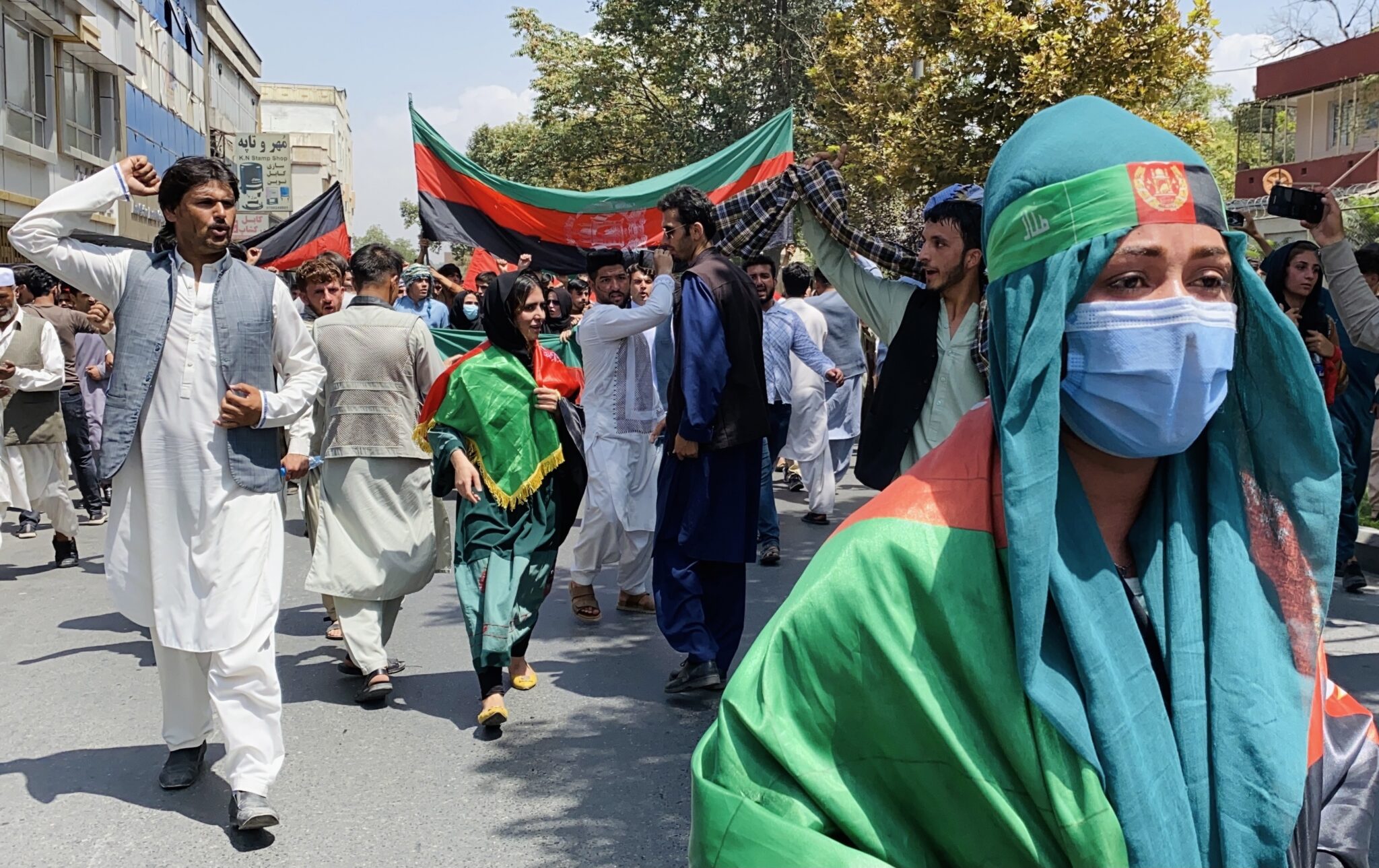 Kabul (Afghanistan), 19/08/2021.- Afghans hold national flags as they celebrate the Independence Day in Kabul, Afghanistan, 19 August 2021. Afghanistan's celebrates the 102nd anniversary of its independence from British rule on 18 August. (Afganistán) EFE/EPA/STRINGER