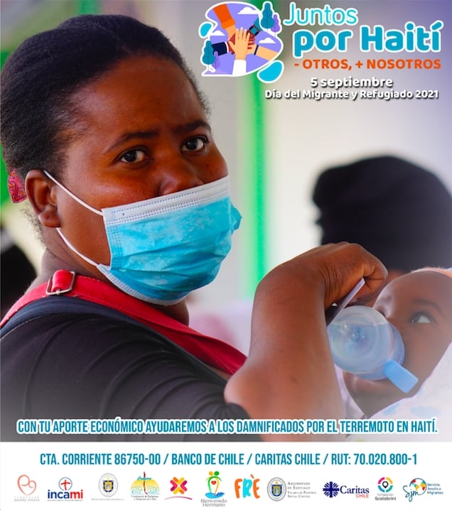 El primer Domingo de septiembre se celebra, en Chile, el Día del Migrante, convocado por el Instituto Católico de Migración (INCAMI) que incluye una colecta en todo el país para sus labores humanitarias. Las 9 organizaciones que integran la Red Clamor en Chile, entre ellas INCAMI, han convocado la campaña ‘Juntos por Haití’ entre el 5 y 12 de este mes, con un llamado a aportar también en dinero en esa colecta que ahora se orienta al pueblo haitiano.