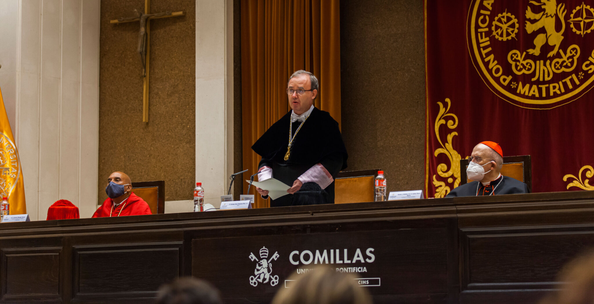La Universidad Pontificia Comillas ha dado hoy inicio oficial al curso académico 2021-2022. Un curso que, según expresó el rector, Enrique Sanz Giménez-Rico, SJ, es una oportunidad para “mirar adelante con ilusión, apertura, cuidado, responsabilidad y esperanza”. También pidió vivir los tiempos que vienen “de una manera plena, desarrollando todos nuestros talentos y capacidades, y todo lo que nos configura y caracteriza”.