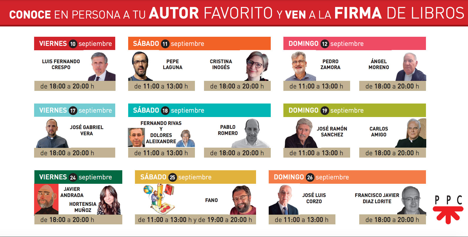 En la caseta 264 se encuentra PPC, donde varios de sus autores firmarán ejemplares de sus últimas obras los viernes, sábados y domingos desde hoy hasta el día 26 de septiembre.