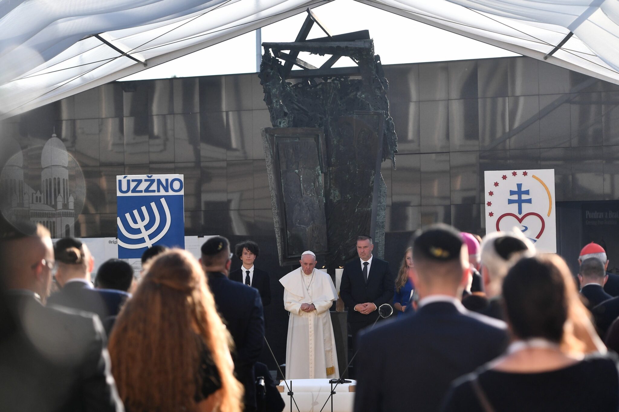 El encuentro con la comunidad judía no falta nunca en la agenda de los viajes papales. No podía estar ausente en el que Francisco está realizado a Eslovaquia. Según datos fidedignos más de cien mil eslovacos de origen judíos fueron víctimas de la shoah y de los quince mil que vivían en Bratislava apenas sobrevivieron tres mil. Y no sólo los seres humanos fueron sacrificados en el holocausto. Su rico patrimonio arquitectónico y cultural fue destruido por la barbarie nazi y comunista.