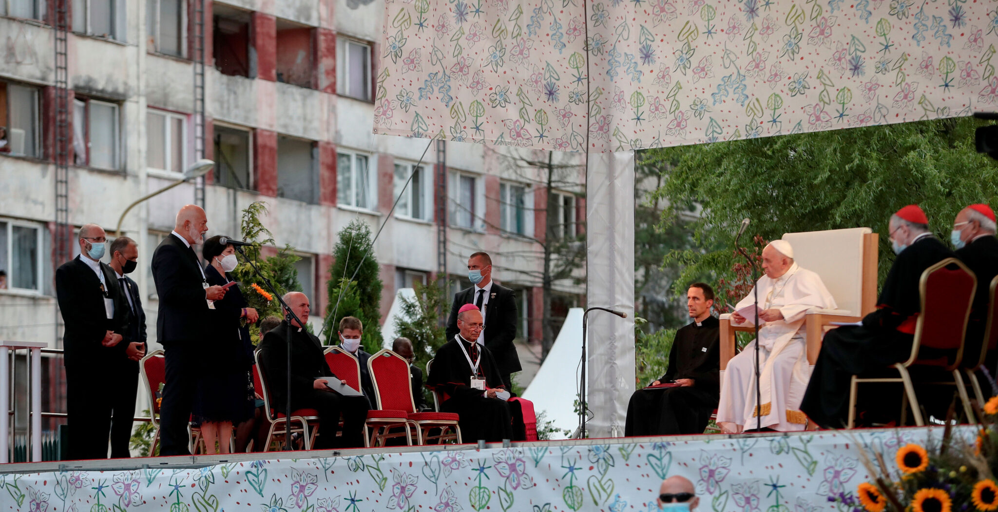 Francisco llega feliz. Y no es para menos. Una legión de fieles aguardan en la plaza de Luník IX, uno de los 22 distritos de la ciudad de Košice, donde vive la comunidad gitana más grande de Eslovaquia. Un espacio olvidado por todos… menos por los salesianos, a los que el Papa les ha agradecido enérgicamente su apuesta por la integración.