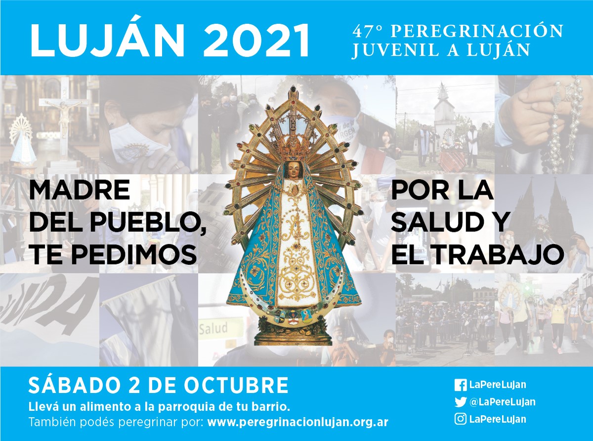 Tanto las misas como los gestos y celebraciones serán compartidos de modo virtual a través de nuestras redes: www.peregrinacionlujan.org.ar. Para seguirlo por redes: #Lujan2021 #MadreDelPueblo #SaludyTrabajo