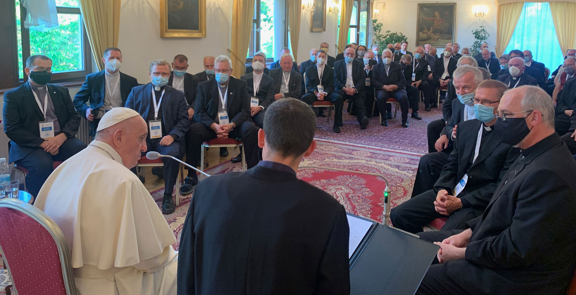 “Vivo todavía. Aunque algunos me querrían muerto. Sé que hubo incluso reuniones entre prelados, que pensaban que el Papa estaba más grave de lo que se decía. Preparaban el cónclave. ¡Paciencia! Gracias a Dios, estoy bien”. Esa fue la respuesta que dio el Pontífice cuando se interesó por su salud uno de los participantes en el encuentro, cita habitual de los viajes papales y que tuvo lugar en la sede de la nunciatura en Bratislava. En la reunión estuvo presente Antonio Spadaro, director de La Civiltà Cattolica y que registró lo hablado.