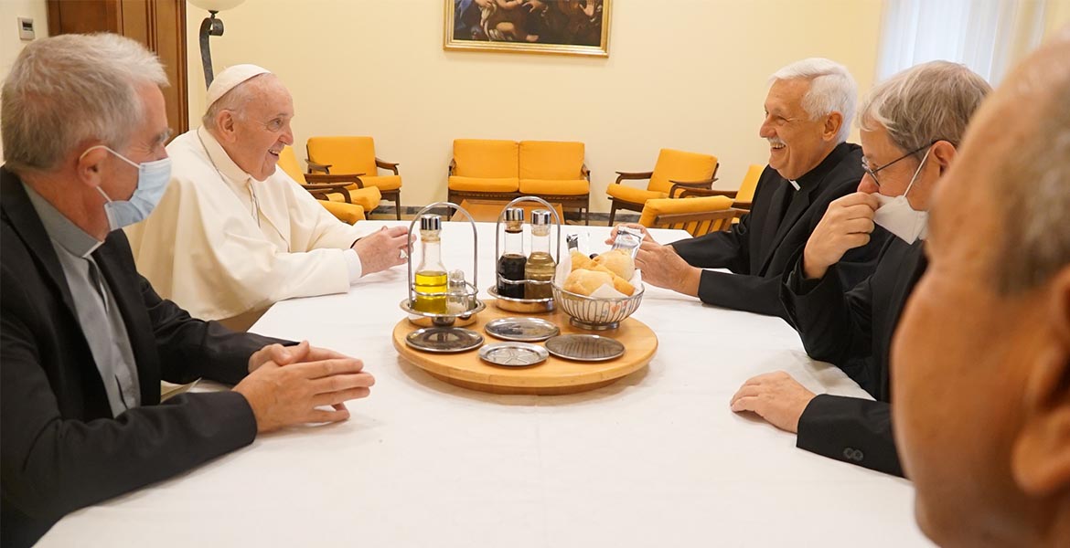En pleno Año Ignaciano, el Pontífice se trasladó a la curia central donde fue recibido por el superior, Arturo Sosa, y los religiosos de la comunidad