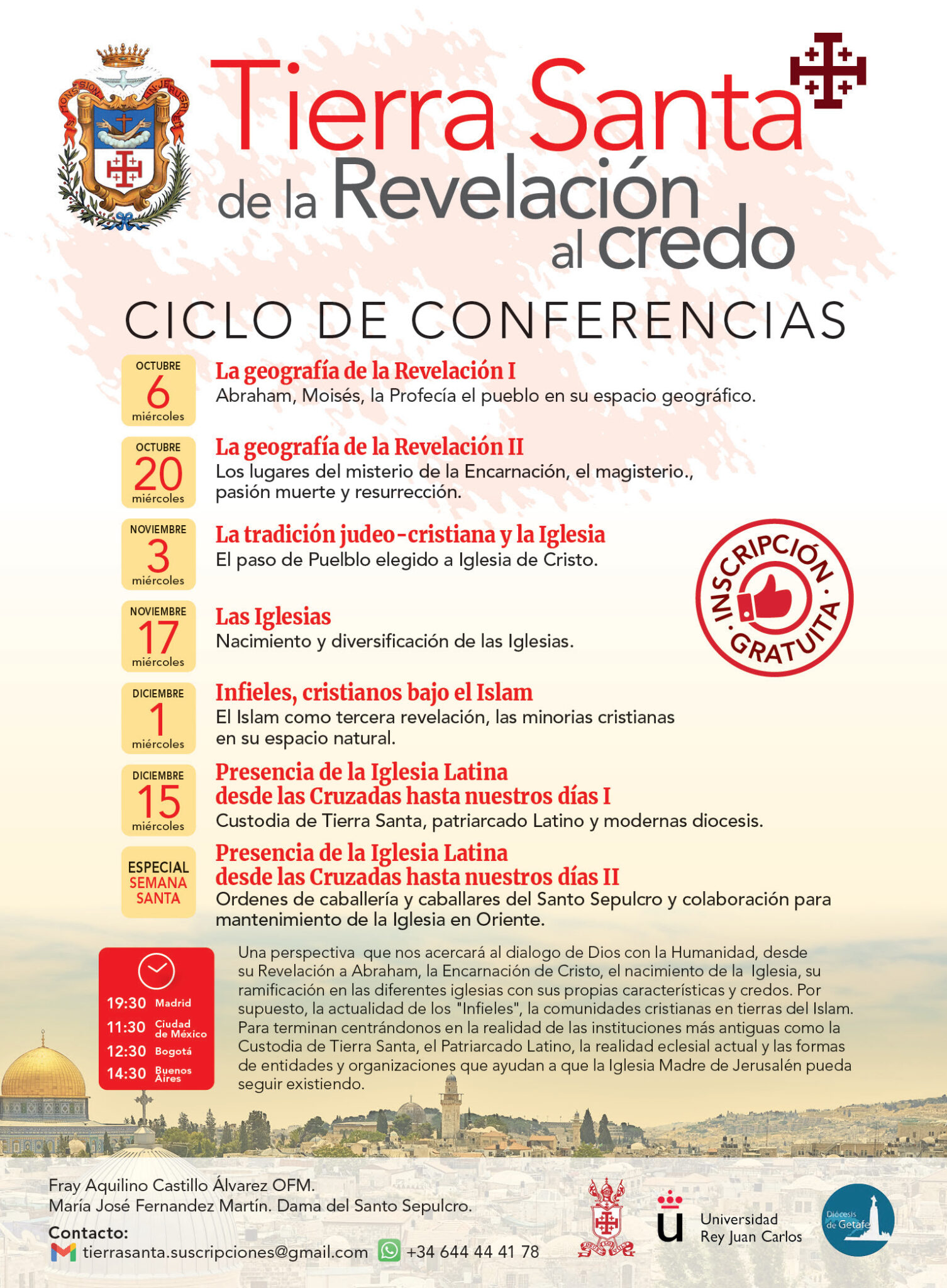 Del mismo modo, las conferencias analizarán el papel en Tierra Santa de la Iglesia católica de expresión latina, así como las grandes instituciones como la Custodia, las diócesis modernas, como el Patriarcado Latino, y también las expresiones de rito oriental. “Habrá también un especial de Semana Santa, donde hablaremos sobre los cristianos y la labor de la Custodia allí”, añade.